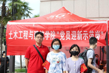 一名党员就是一面旗帜,一份付出就是一份力量。在校门口设立的党员迎新示范岗处,一个又一个肩带红袖章的党员志愿者,忙碌的来回奔波于迎新服务点,主动帮助新生进行行李消杀和物品搬运,引导新生顺利完成入学报道手续,热情解答他们的各种疑问。在炎炎烈日下,虽然汗水早已浸透了衣服,但党员志愿者们依然坚守岗位,服务的热情始终不减。学生党员李伟强从早上7点30分开始,就已经投入到了迎新的志愿服务工作中,他说道:“作为一名党员,理应站在迎新服务第一线,在担当奉献中展现党员风采。虽然一天的工作很辛苦,但也传递了爱心,收获了新生的认可,再苦再累都值得。”