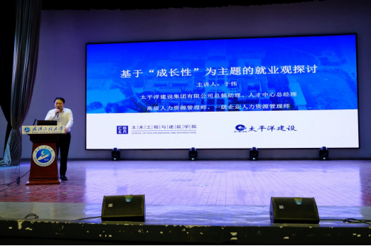 在“职业经理人”讲座环节,太平洋建设集团总裁助理、人才中心总经理于伟从就业背景、就业视角以及用人单位视角切入,深度剖析了当前毕业生就业面临的困境和难点,积极回应学生关切的面试技巧、薪资福利待遇、未来发展机遇等问题,整个报告立意深远,主题突出。