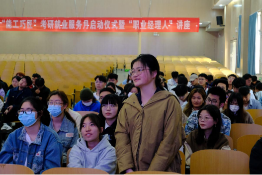 成轶在致辞中强调“就业是最大的民生工程、民心工程。学院高度重视就业工作,希望以‘能工巧匠’职业规划与就业指导月为契机,引导学生树立正确的就业观、择业观。”她从珍惜机会、树立理想、确立目标三个视角切入,号召全体学生锁定目标企业、聚焦目标学校,采取求职行动,做好复习规划,从此时此刻开始,拒绝茫然的借口和躺平的思想。